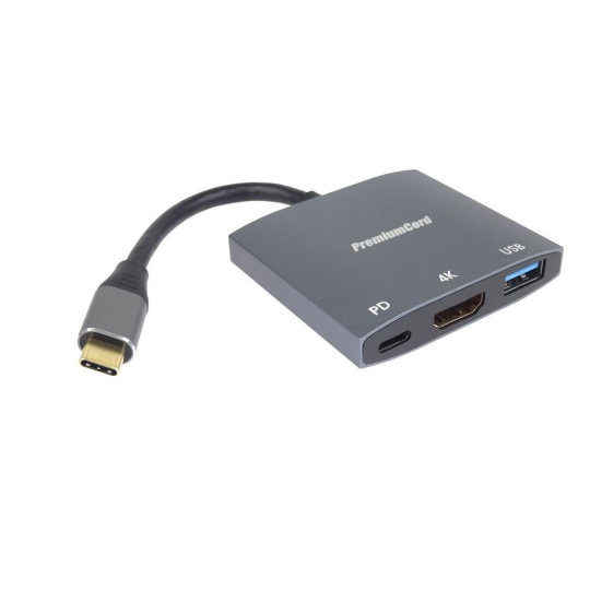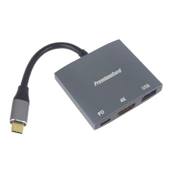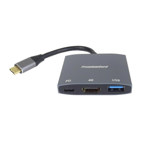 PremiumCord adaptér USB-C na HDMI, USB3.0, PD, rozlišení 4K a FULL HD 1080p