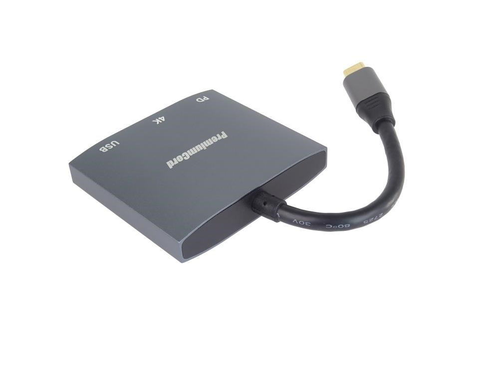 PremiumCord adaptér USB-C na HDMI, USB3.0, PD, rozlišení 4K a FULL HD 1080p
