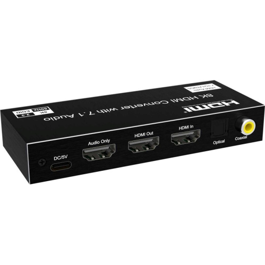 Tento převodník dokáže oddělit zvuk z HDMI signálu na samostatné audio výstupy pro zesilovače, domáci kina nebo sluchátka.