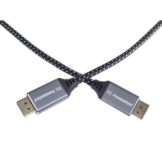 PremiumCord DisplayPort 1.4 přípojný kabel pro rozlišení 8K, kovové a zlacené konektory, 5m