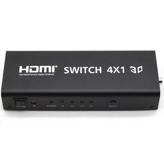 4 HDMI zařízení sdílí 1 HDMI výstupní zařízení (obrazovku). Výběr zařízení tlačítkem nebo dálkovým ovládáním.Audio výstup pro zesilovač nebo audio systém.