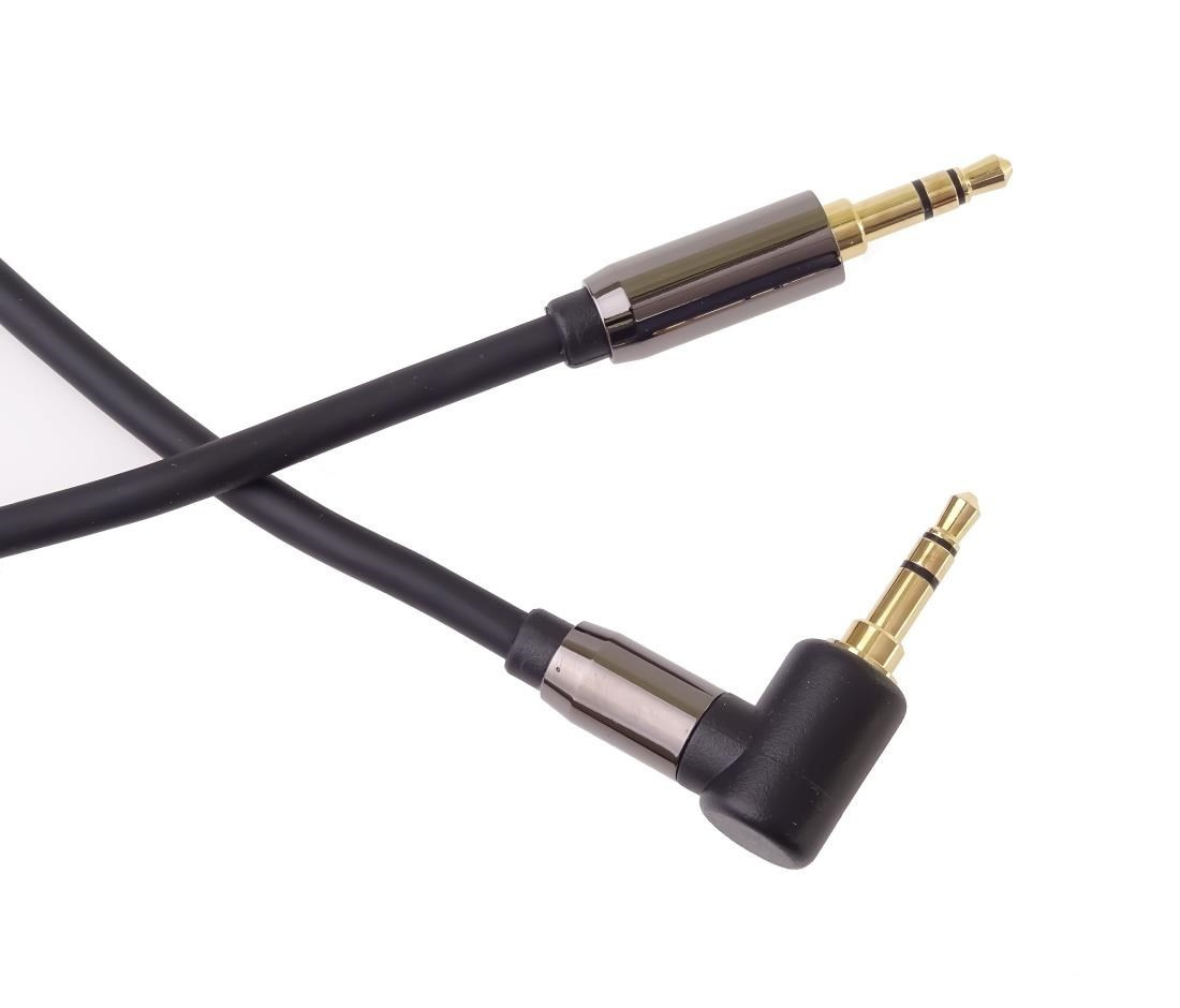 PremiumCord HQ stíněný kabel stereo Jack 3.5mm - Jack 3.5mm zahnutý 90°, 3m
