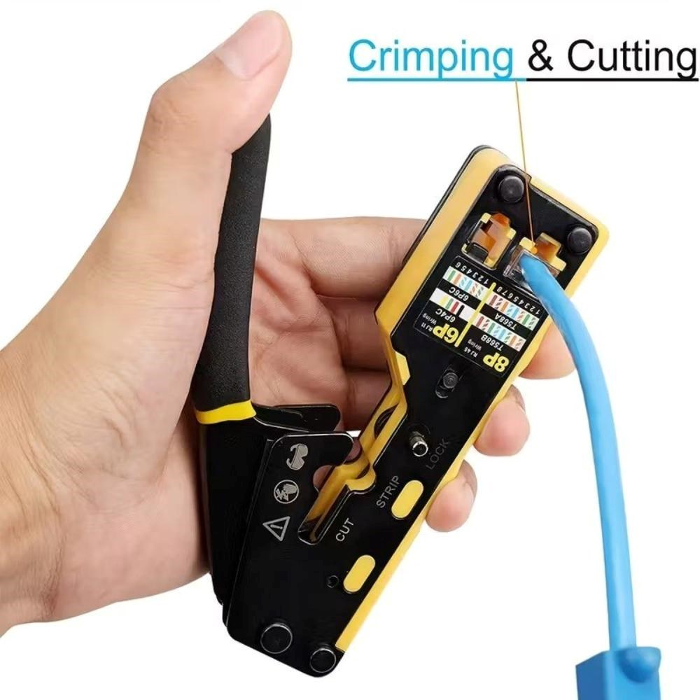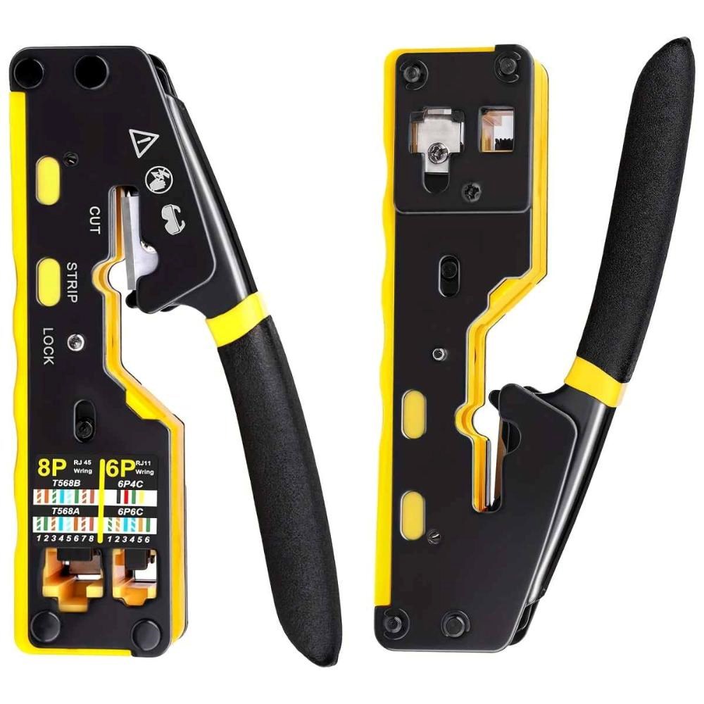 PremiumCord krimpovací kleště na průchozí RJ konektory jsou spolehlivým univerzálním nástrojem pro práci s většinou běžných modulárních zástrček řady RJ — včetně RJ11, RJ12, RJ14, RJ45 a dalších typů. Díky konstrukci 3 v 1 umožňují snadné krimpování, stříhání i odizolování kabelů, což výrazně urychluje a zpřesňuje práci při výrobě či opravách síťových a telefonních vedení.