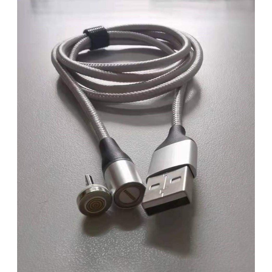 PremiumCord Magnetický micro USB a USB-C nabíjecí a datový kabel 1m, stříbrný