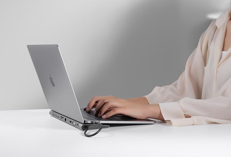 Umožní přidat další monitor a USB periferii nebo paměť a současně napájet přes konektor PD. Umožňuje také pracovat na více obrazovkách současně.