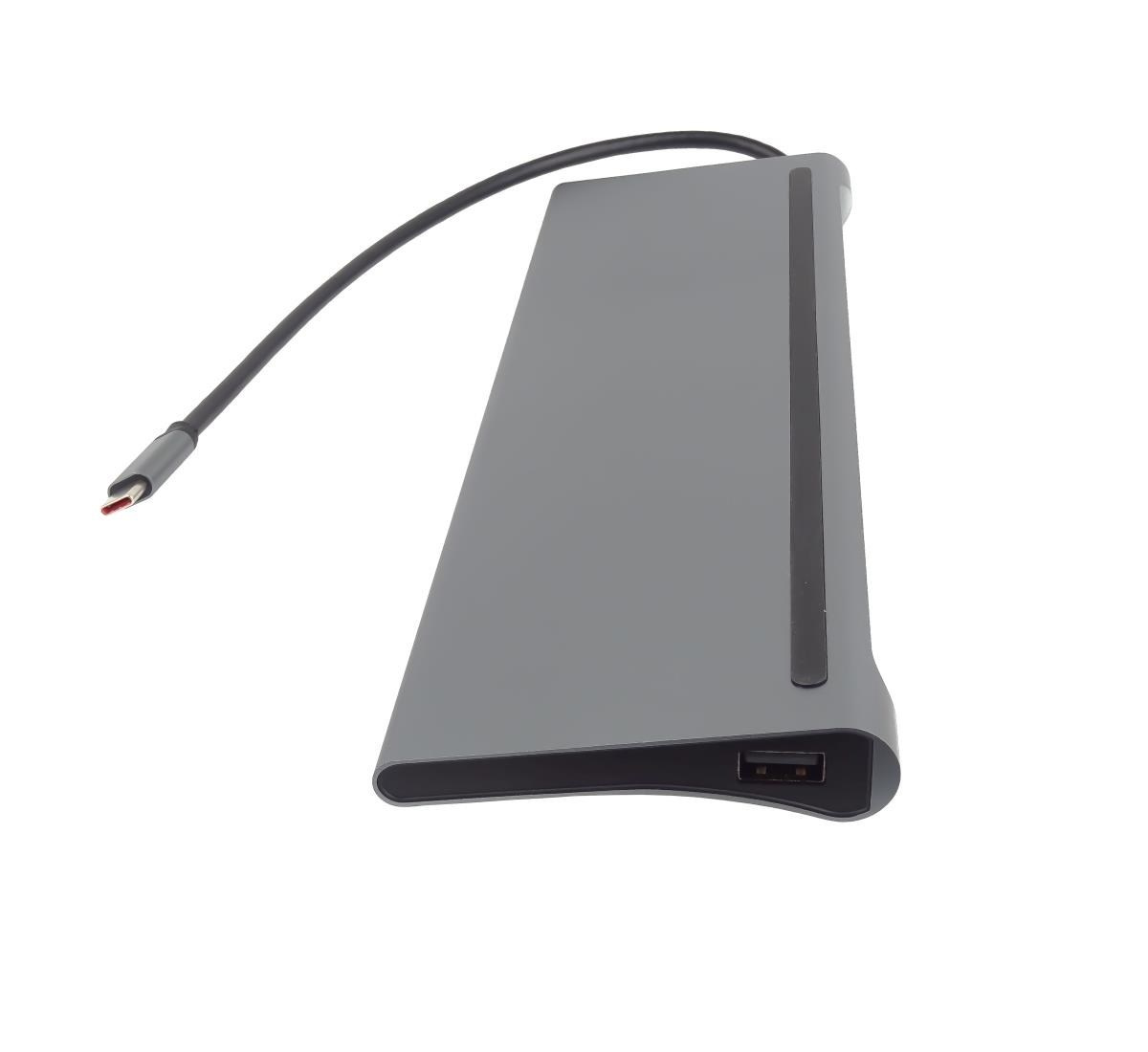 - Výstupní konektor: HDMI female + USB3.0 female + USB2.0 female + PD (power delivery) + čtečka karet SD/TF + RJ45 konektor na ethernet 10/100Mbps