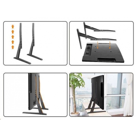 nosnost 35kg podporuje VESA standardy 100x100 až 800x400 vhodný na televizory a monitory s úhlopříčkou 37-70" výškově polohovatelný 590-730mm možnost vedení kabeláže tělem podstavce délka podstavy 423mm stabilní, bezpečný barva černá záruka 10 let Podstavec / stojánek / nožky na televizi nebo monitor podporují VESA standardy: VESA 100x100 VESA 200x100 VESA 200x200 VESA 300x200 VESA 300x300 VESA 400x200 VESA 400x300 VESA 400x400 VESA 600x400 VESA 800x400.
