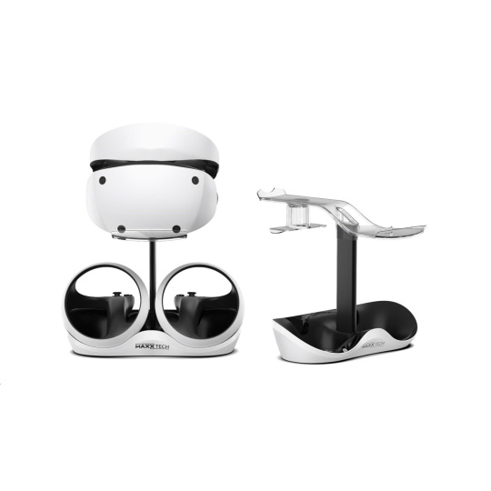 Maxx Tech LED Charging Stand – speciálně navržený pro PSVR2. Nabíjí oba ovladače PSVR 2 najednou díky diskrétním magnetickým nabíjecím adaptérům. Obsahuje stojan na headset, na kterém si můžete headset PSVR2 vystavit, zatímco se vám budou ovladače nabíjet.