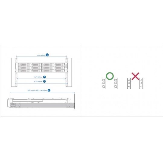 Sady kolejnic QNAP Rail Kits pomáhají při instalaci QNAP NAS do racku. Posuvné kolejnice umožňují zasunutí QNAP NAS dovnitř a vysunutí ven pro snadnou údržbu a správu. Modely QNAP NAS určené do racku vyhovují standardům rackové montáže ANSI/EIA-RS-310-D. Než nakoupíte serverový rack, nejprve se prosím ujistěte, zda tento serverové rack odpovídá příslušným specifikacím.