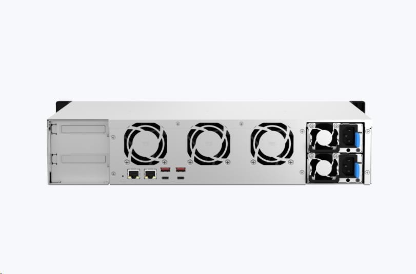 NAS s malou hloubkou pro montáž do racku s duálním připojením 2,5GbE. Čtyřjádrový procesor AMD Ryzen™ s podporou 10/25GbE nebo M.2 SSD cache s možností rozšíření PCIe pro virtuální aplikace (Podpora operačních systémů QTS nebo QuTS hero)