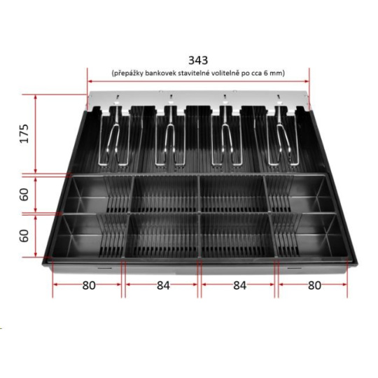 | Přihrádky | 4× pro bankovky 8× pro mince - vyjímatelný mincovník |