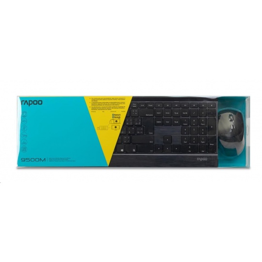 Tato ultratenká sada myši a klávesnice nabízí špičkové materiály se stylovým designem a komfortem užívání. Tělo klávesnice vyrobené z nerezové oceli a hliníkové slitiny je nejen pevné a odolné, ale zároveň dodává pracovnímu stolu určitý styl. Sada 9500M je nejen vyspělá konstrukcí, ale také funkcionalitou. Nabízí vícerežimovou technologii připojení firmy Rapoo – prostřednictvím spolehlivého bezdrátového vysílače 2,4 GHz, Bluetooth 3.0 a 4.1 – umožňuje současné připojení a přepnutí několika zařízení (s automatickým párováním). Myš v této sadě je vybavena plně nastavitelným vysoce výkonným optickým senzorem 600 až 1600 DPI. Navíc energeticky úsporná technologie firmy Rapoo zajišťuje životnost baterií až 12 měsíců, takže minimalizuje potřebu jejich výměny.