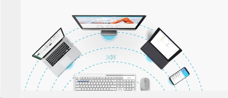 Inteligentní přepínání mezi Bluetooth 3.0, 4.0 a 2.4G zajišťuje stabilní připojení bezdrátového přenosu. I nadále můžete používat myš bez ohledu na nedostatek USB portu nebo při ztrátě přijímače.