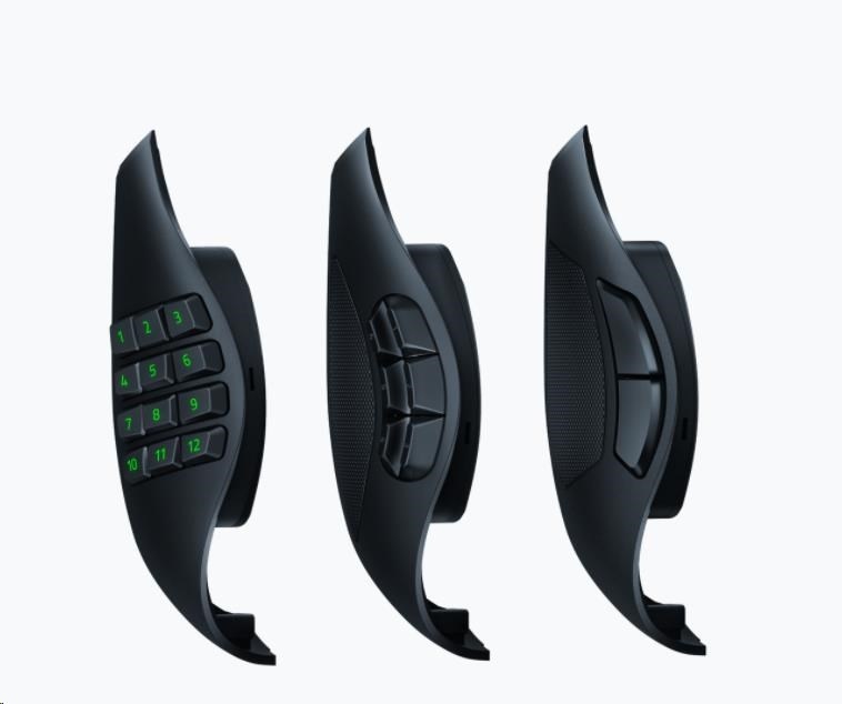 This modular wireless gaming mouse comes with 3 types of side plates that snap on magnetically—12, 6 and 2-button layouts specially designed to help you adapt across different game genres. Optimize your game with these recommended button configs for each side plate.