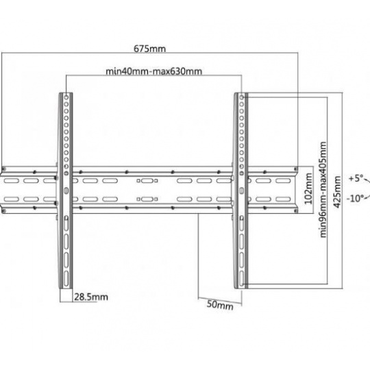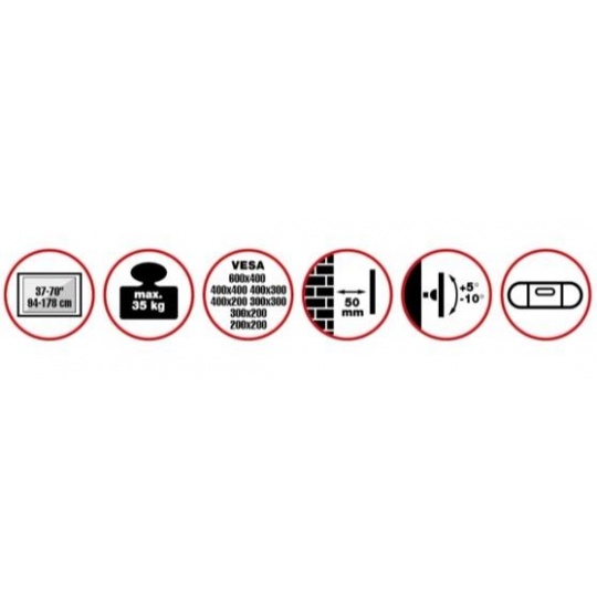 Nástěnný ocelový držák SLIM s minimální vzdáleností od stěny na Plasma a LCD TV s uhlopříčkou 37"- 70" (94-178cm) a hmotností maximálně 35kg. Středová konzole na zavěšení TV s upevněnými držáky, vertikálně výklopný +5°/-10°, vzdálenost od stěny 50mm, materiál ocel, barva černá. Uchycení VESA: 200x200, 300x200, 300x300, 400x200, 400x300, 400x400, 600x400..