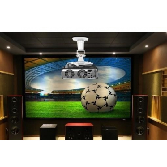 Stropní držák na dataprojektory - vzdálenost od stropu 22cm, přístroj lze otočit o 360° a naklonit +/-25°, maximální zatížení 15kg, kabelový prostup, vhodné i pro uchycení na šikmé plochy, bílý. Univerzální systém uchycení dataprojektorů (rozsah 18-31 cm)..
