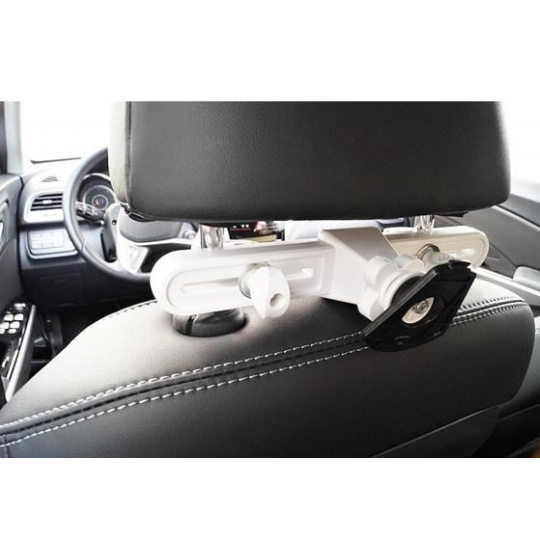 Držák pro tablety 7-11" v horizontální i vertikální poloze do auta pod opěrku hlavy. Určeno pro pasažery na zadním sedadle. Fixace ze dvou stran, otáčení tabletu o 360°, nastavitelná šíře uchycení 45-225mm, plastové provedení, bílý..
