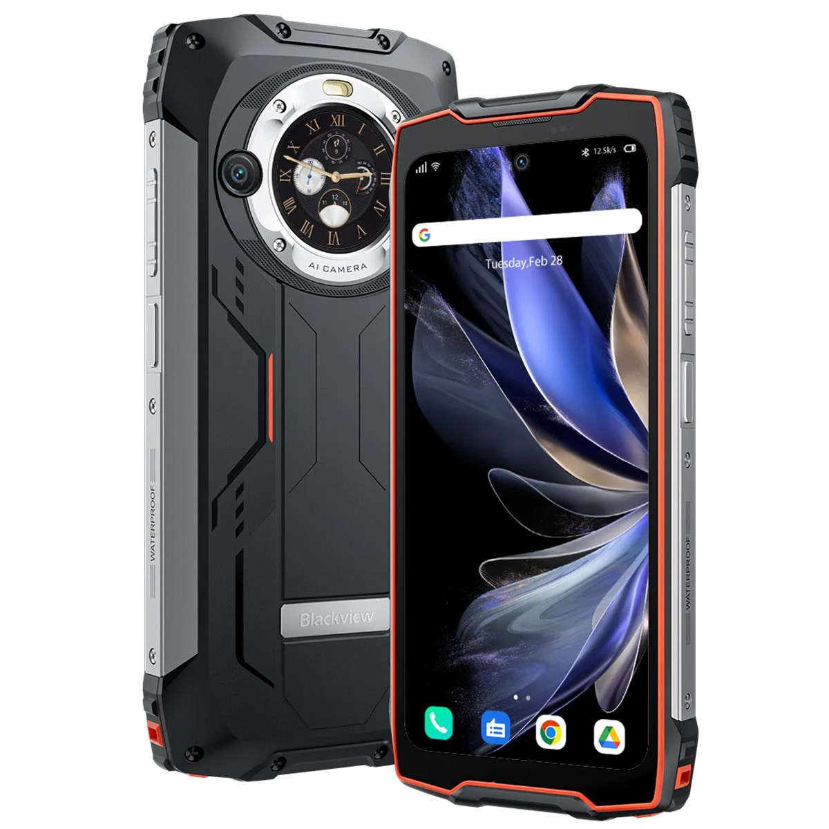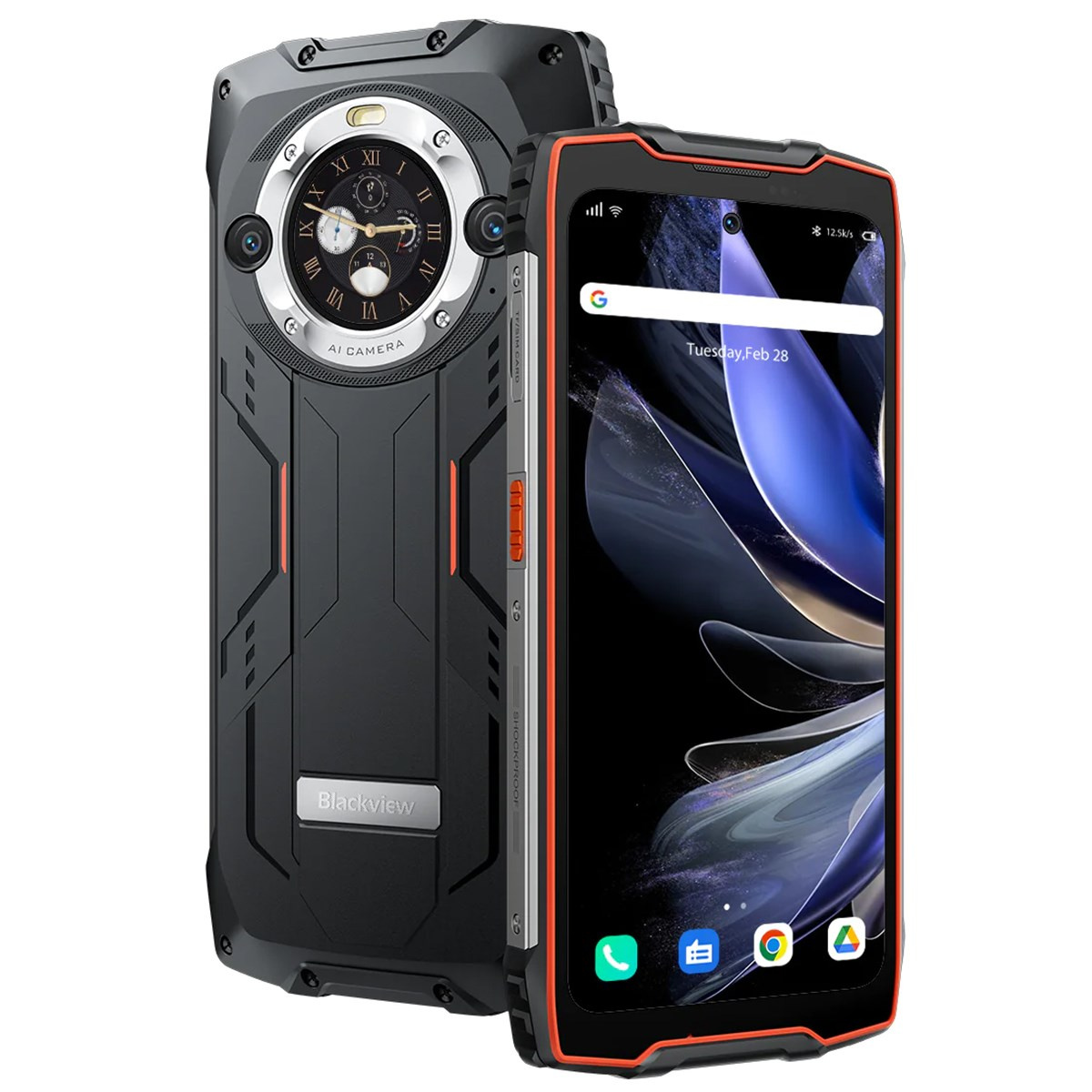 Rugged Smartphone Blackview BV9300 Pro 4G G99 12GB 256GB 15080-33W A13-D4, Watch Display, Black w Orange [No Charger]