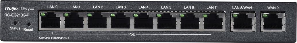 Registrace dealerské ceny: https://docs.google.com/forms/d/1sWwsswsbBk36eZx4CJrfl47qUvrORQyYz7kMjrt2f_c/prefill Popis produktu Ruijie RG-EG210G-P je kabelový Gigabitový router s PoE, dostatečným VPN výkonem pro obsloužení poboček a vzdáleně pracujících pracovníků v rámci firmy. Bezpečný a spolehlivý router s vlastním webovým managementem, možností správy přes Ruijie Cloud odkudkoliv, blokování obsahu podle typu aplikace, inteligentní Multi-WAN load balancing s možností využít až 2 WAN porty zároveň. Router nabízí 1 Gigabitovými WAN port, 8x Gigabit LAN, 1 Gigabitový LAN/WAN port, celkový výkon v NATu 600 Mbps a 802.3af/at PoE na prvních 8 portech s celkovým PoE budgetem 70W. Router pro přístup do lokální sítě umožňuje i několik možností VPN serverů a to konkrétně: IPsec, PPTP, L2TP a OpenVPN. Obsah balení • Zařízení • Napájecí adaptér 54V Technické parametry Konektory a rozhraní Rychlosti WAN:(1) 10/100/1000Mbps Možnost více WAN:Ano Rychlost LAN:(8) 10/100/1000Mbps + (1) 10/100/1000Mbps LAN/WAN Gigabit LAN:Ano Napájení Typ napájení:DC konektor Typy PoE:PoE-Out (pouze) Podporované PoE-Out standardy:802.3af, 802.3at Počet PoE Out portů:8 PoE budget [W]:70 Max. spotřeba energie [W]:10 Napájení přes konektor/svorkovnici:54V DC Fyzické charakteristiky Provedení:Desktop Ventilátory:Bez ventilátoru Šasi:Kovové Tlačítka:Reset Provozní teplota [°C]:0 až 40 Šířka [mm]:202 Výška [mm]:28 Hloubka [mm]:107 Hardware Frekvence CPU [MHz]:1350 Obecné Propustnost NAT [Mb/s]:600 Software Podporované VPN:PPTP, L2TP, IPSec, OpenVPN Web management:Ano Management:Webové rozhraní, Ruijie cloud Podpora IPv6:Ano Výchozí IP adresa:192.168.110.1 Výchozí jméno a heslo:Nastavuje se při prvním spuštění.