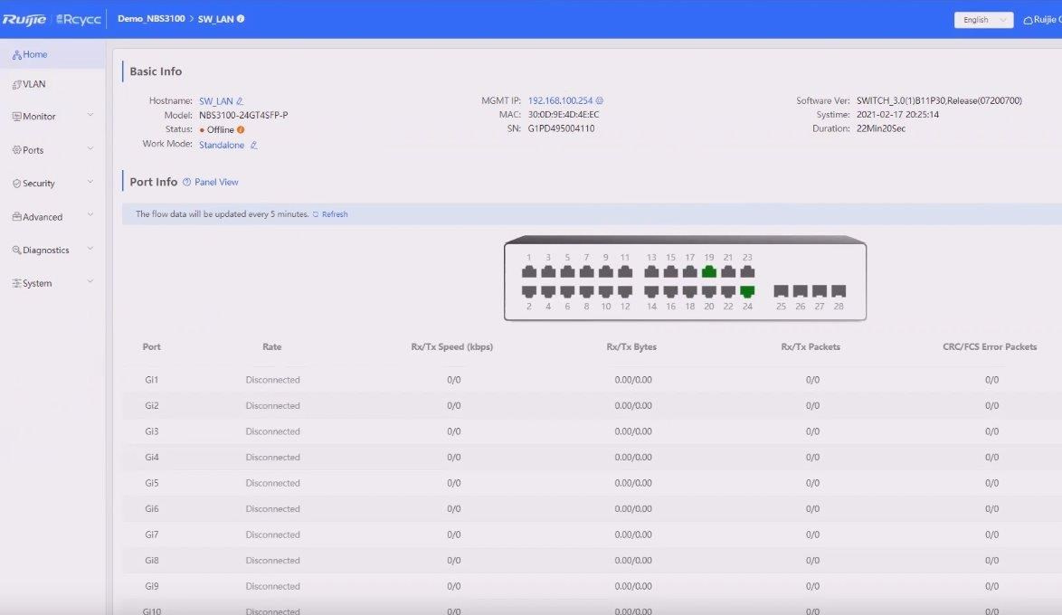 Registrace dealerské ceny: https://docs.google.com/forms/d/1sWwsswsbBk36eZx4CJrfl47qUvrORQyYz7kMjrt2f_c/prefill Popis produktu Inteligentní cloudově i přes webové rozhraní spravovatelný Enterprise L2 chytrý rackmount PoE switch RG-NBS3100-48GT4SFP-P od značky Ruijie, nabízí řešení s 48 Gigabit LAN porty, které podporují 802.3af/at PoE s celkovým PoE budgetem 370 W a 4 SFP porty. Tento switch je ideální pro síťové aplikace, které vyžadují výkon, spolehlivost a vysoký počet portů. Co se výčtu funkcí týče, switch nabízí podporu VLAN, DHCP snooping, RSTP, IGMP, SNMP, agregaci portů, testování kabelu a další. Klíčové vlastnosti • 48× 10/100/1000 Mbps LAN port • 4× SFP port • 48× 802.3af/at PoE - max. 30 W/port, PoE budget 370 W • Kvalitní rackmount provedení, kovové šasi • 2× Ventilátor s adaptivní rychlostí • Správa přes webové rozhraní a cloud • Celoživotní správa na Ruijie Cloud kdykoli a kdekoli • Rozpoznávání IP kamer - jedinečná hodnota pro CCTV síť • Podpora Jumbo packetů Obsah balení • Zařízení • Úchyty do 19" racku • Napájecí kabel Technické parametry Konektory a rozhraní Rychlost LAN:(48) 10/100/1000Mbps Optické rozhraní:(4) 1000Mbps Napájení Typ napájení:Ze sítě (230V) Typy PoE:PoE-Out (pouze) Podporované PoE-Out standardy:802.3af, 802.3at Počet PoE Out portů:48 PoE budget [W]:370 Max. spotřeba energie [W]:448 Napájení přes konektor/svorkovnici:230V AC Fyzické charakteristiky Provedení:Rackmount Ventilátory:(2) 40 x 40 mm Šasi:Kovové Tlačítka:Reset Provozní teplota [°C]:0 až 50 Šířka [mm]:440 Výška [mm]:44 Hloubka [mm]:358 Obecné Rychlost přepínání [Gbps]:104 Tabulka MAC adres:16000 Jumbo rámec [Bytes]:9216 Rychlost předávání paketů [Mpps]:77,4 Software Web management:Ano Management:Webové rozhraní, Ruijie cloud Funkce:VLAN, DHCP snooping Výchozí IP adresa:10.44.77.200 Výchozí jméno a heslo:Nastavuje se při prvním spuštění.