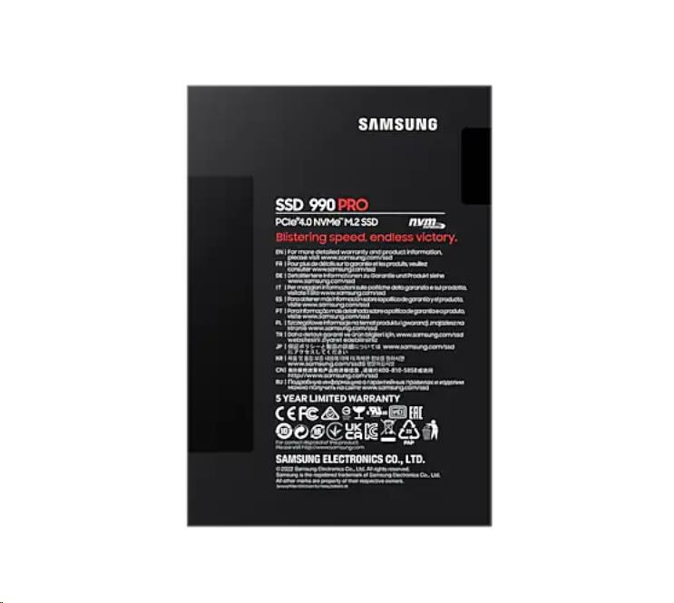 990 PRO přináší rychlosti, které budete milovat. Ve srovnání 980 PRO dosahuje 40% nárůst v sekvenčním čtení a 55% v sekvenčním zápisu. Výsledkem toho jsou vysoké hodnoty 1550K a 1400K IOPS či 7450 a 6900 MB/sv rámci sekvenčního čtení a zápisu, což se blíží maximálním teoretickým rychlostem samotného rozhraní PCIe 4.0. Oblíbené herní tituly, výsledky datové analýzy, editovaná videa i 3D modely tak budou načteny dříve, než řeknete SSD. *Výkon sekvenčního a náhodného zápisu byl měřen s aktivovanou technologií Intelligent TurboWrite. Ta funguje pouze v rámci určité velikosti přenosu dat. Výkon se může v závislosti na použitém firmwaru SSD, hardwaru, konfiguraci systému a působení dalších faktorů lišit. Podrobné informace vám poskytne místní servisní středisko. *Konfigurace testovacího systému: 8-jádrový procesor AMD Ryzen 7 5800X na frekvenci 3,8 GHz, DDR4 3600 MHz 16 GB × 2 (PC4-25600 OC), OS-Windows 10 Pro 64-bit, Čipset ASRock-X5. *Chcete-li maximalizovat výkon 990 PRO, zkontrolujte, zda váš systém podporuje rozhraní PCIe 4.0 na webových stránkách výrobců Intel či AMD. *4TB varianta bude dostupná v průběhu roku 2023.