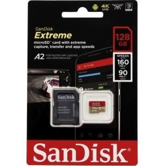 SanDisk micro SDXC karta 128GB Extreme Action Cams and Drones (190 MB/s Class 10, UHS-I U3 V30) + adaptér
