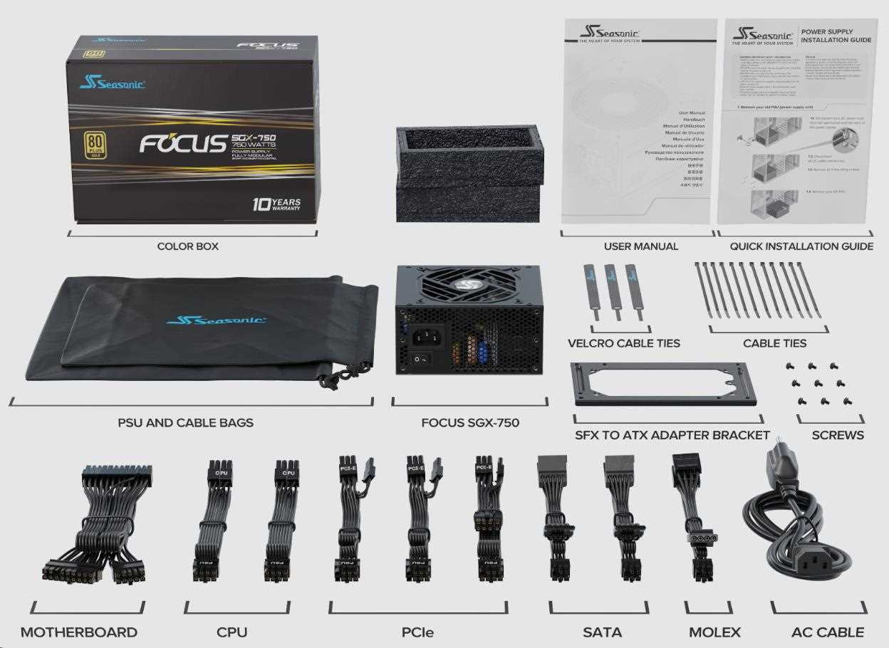 The new line of Seasonic's FOCUS SGX is versatile in its application and powerful with a small footprint. It is a standard SFX unit, measuring at 125 mm (L) x 100 mm (W) x 63.5 mm (H). The FOCUS SGX (2021) is shipped with an SFX to ATX adapter bracket in the box, which allows the power supply to be mounted not only in the SFX form factor chassis, but also a standard ATX chassis should the user prefers to reserve more space for airflow inside the PC case. The Seasonic hybrid fan control is always enabled to optimize the cooling according to necessity.