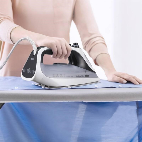 Udržujte si své oblečení vždy krásně čisté a bez záhybů. Po vyprání a usušení ho vyžehlíte pomocí napařovací žehličky Braun TexStyle 7 Pro SI7149WB, která vyniká vysokou výkonností a snadným používáním. Na spodní straně se nachází žehlicí plocha EloxaPlus s technologií FreeGlide3D, která umožňuje snadné přejíždění všemi směry, a to i přes švy nebo knoflíky. Na extra odolné nerovnosti a záhyby použijte parní ráz 220 g/min, k běžnému používání vám pak postačí variabilní pára 50 g/min. Před začátkem žehlení naplňte 300ml nádobku na vodu a kdykoliv potřebujete, tekutinu doplňte přes velké hrdlo přímo z kohoutku. Díky funkci AntiDrip nebudou na vyžehleném oblečení zůstávat viditelné stopy ani kapky.