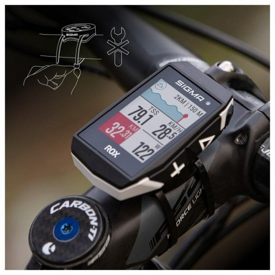 Držák lze během pár vteřin připevnit pomocí dvou kabelových pásků na řidítka nebo představec. Držák je vhodný pro celou řadu SIGMA ROX a lze jej připevnit na všechny typy řídítek.
