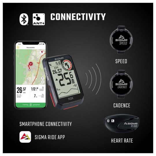 Kdo si přeje získávat ještě další nebo přesnější data, může díky funkcím ANT+ a Bluetooth připojit k ROX 4.0 také externí snímače jako jsou snímač rychlosti, kadence a tepové frekvence. Všechny tyto uvedené snímače jsou součástí balení.