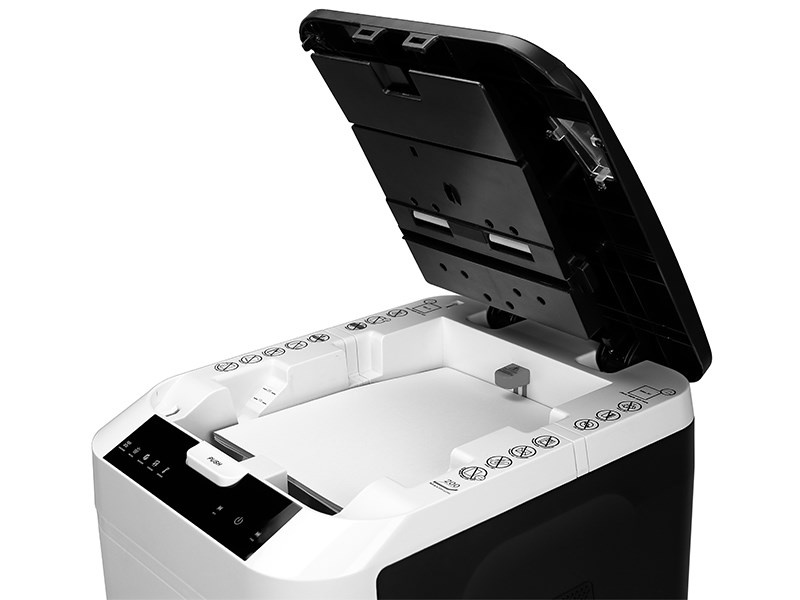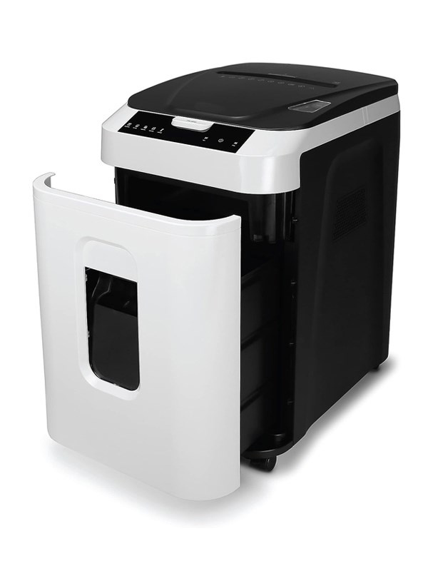 Automatický skartovací stroj atraktivního designu s kapacitou zásobníku na 180 listů pro střední kanceláře. Vhodný pro skartaci dokumentů o šířce 220 mm. Stroj je standardně vybaven automatickým systémem start/stop, zpětným chodem, tepelnou pojistkou motoru proti přehřátí, signalizací přeplněného koše. Příležitostně lze skartovat sešívací sponky a kreditní karty. Šíře vstupu: 220 mm Velikost řezu: 2 x 12 mm Kapacita při manuálním vložení, papír DIN A4, 70 g/m2: 10 Kapacita automatického zásobníku: 180 listů Stupeň utajení dle nové DIN 66399: P-5 Řezný mechanismus skartuje CD, kreditní karty a sponky: ne Rychlost: 0,05 m/s Velikost koše: 32,2 litrů Hlučnost motoru: < 55 dB Připojovací parametry, Watt / Volt/Hz ( střídavý proud ): 500 W /230 / 50 / 1~ Délka nepřetržité skartace: 60 min Tepelná pojistka motoru proti přehřátí: dvojitá Automatický start/stop: ano Aut. zpětný chod / aut. vypnutí při ucpaném koši: ano Elektronické zabezpečení dveří: elektronické s LED kontrolkou Pojezdová kolečka: ano Rozměry, mm ( v x š x h ): 555 x 365 x 265 Hmotnost: 16,1 kg.
