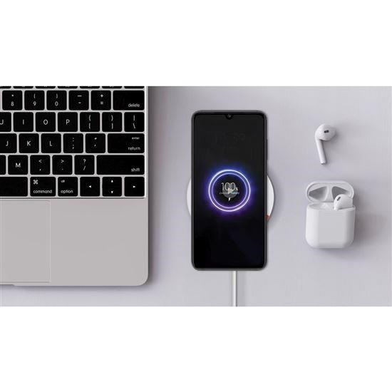 nabíjí bezdrátově i ostatní telefony a jinou elektroniku bez MagSafe, bez využití magnetického uchycení na podložku.
