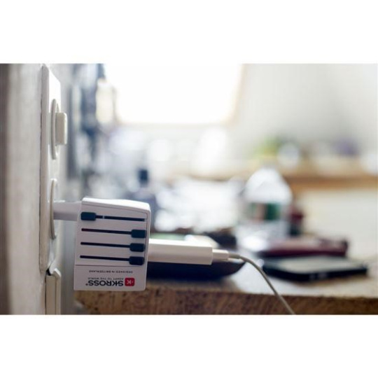 SKROSS MUV USB AC65PD umožňuje bezpečné připojení elektronických zařízení ve více než 220 destinacích po celém světě. Díky integrované rychlonabíječce s porty USB-C a USB-A můžete současně napájet notebook, telefon, tablet, powerbanku nebo jiná zařízení. Navíc nemusíte pořizovat USB-C kabel, je přibalen k adaptéru.
