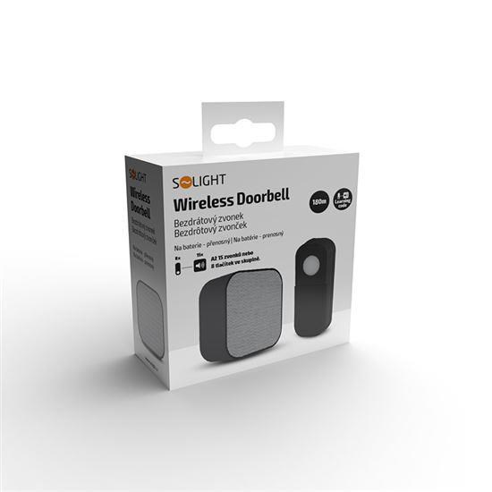 Solight bezdrátový zvonek, bateriový, 180m, černý, learning code