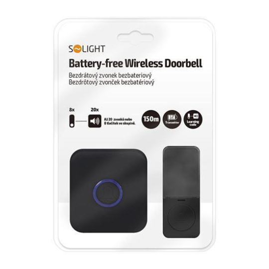 Solight bezdrátový zvonek bezbateriový, do zásuvky, 150m, černý, learning code