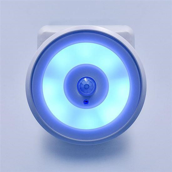 noční světélko svítí bílou barvou, světelná signalizace zvonku je modrou barvou
