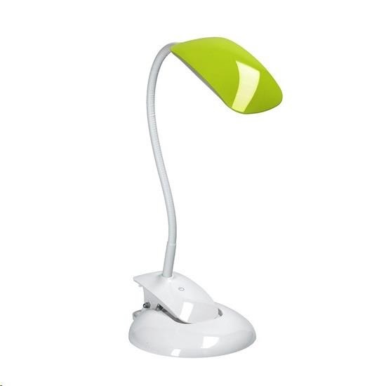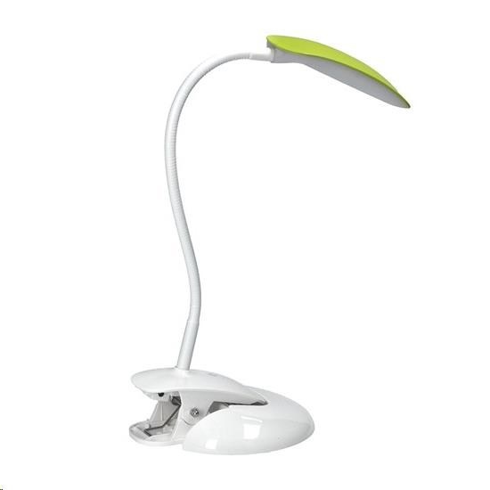 stolní lampička s LED světelným zdrojem lampička obsahuje připínací klip i podstavec pro umístění na stole tři vyměnitelné barevné kryty součástí: bílá, černá, zelená stmívatelná ve třech stupních jasu spínání a změna jasu dotykem prstu lampičku lze ohýbat a natáčet dle potřeby příkon: max. 5W světelný tok: max. 300lm teplota světla (chromatičnosti): 4000K (neutrální bílá) barva: bílá základna, měnitelné barevné kryty napájení: výstup AC 100-240V výstup DC 5V 1A rozměry: cca 380 x 280mm délka napájecího kabelu: 140cm energetická třída: A+ LED zdroj nelze měnit materiál: ABS.