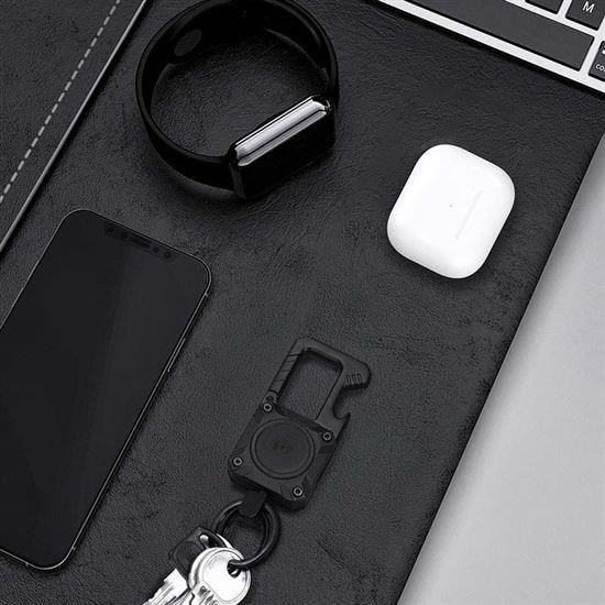 Díky této stylové kovové klíčence budete mít své klíče, batoh nebo jiné cennosti vždy bezpečně pod dohledem. Klíčenka v sobě spojuje Bluetooth lokátor kompatibilní s Apple Find My a praktický otvírák na lahve. Styl, bezpečnost a funkčnost v jednom!