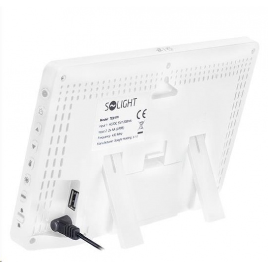 Solight TE81W meteostanice, extra velký barevný LCD, teplota, vlhkost, tlak, RCC, USB nabíjení, bílá