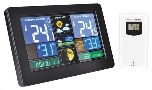 Solight TE81 meteostanice, extra velký barevný LCD, teplota, vlhkost, tlak, RCC, USB nabíjení, černá