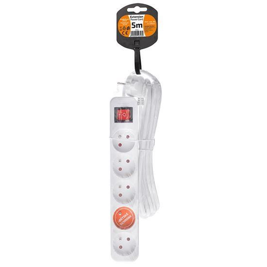 počet zásuvek: 5 průřez vodičů: 3 x 1mm2 typ kabelu: H05VV-F3 lomená vidlice barva: bílá délka: 5m 230V/10A vypínač.