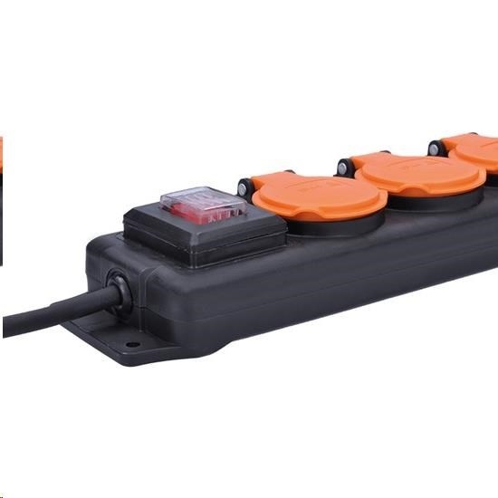 Solight prodlužovací přívod IP44, 4 zásuvky, gumový kabel, vypínač, venkovní, ,5m