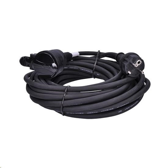 gumový kabel průřez vodičů: 3 x 1,5mm2 typ kabelu: H05RR-F3 barva: černá délka: 10m krytka na zásuvku max. 3680W, 230V/16A.