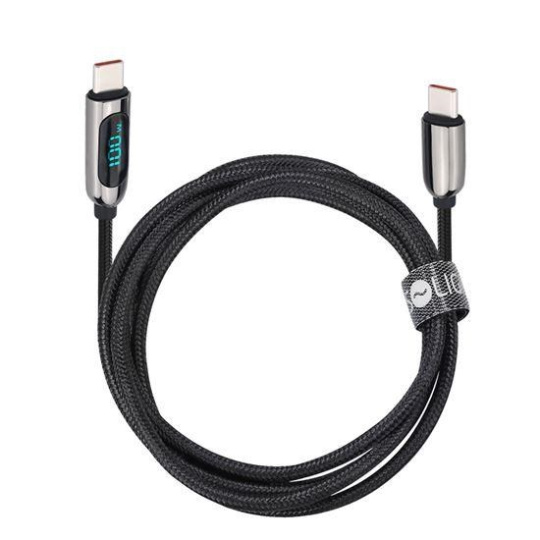 Solight USB-C kabel s displejem, USB-C konektor - USB-C konektor, 100W, 1m