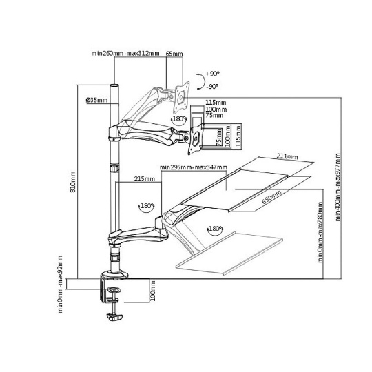 Stolní držák na monitor, klávesnici a myš Fiber Mounts M68C1 Kvalitní stolní držák na monitor, klávesnici i myš, který Vám umožní práci vsedě nebo vestoje Stolní držák, který Vám kdykoli umožní rychlou změnu nastavení tak, že můžete ihned začít pracovat vestoje. Držák umožňuje velmi rychlou změnu polohy výšky monitoru i police na klávesnici a myš. Sami si tak kdykoliv zvolíte, zda budete pracovat vsedě nebo vestoje. Držák umožňuje uchycení na kraj nebo kdekoli v prostoru stolové desky. Polohování je velmi snadné a rychlé, není potřeba žádné nářadí ani složité manipulace, nastavení do požadované polohy je otázkou pár vteřin. Pracovní stanice - stolní držák na monitor s policí na klávesnici a myš, obojí výškově polohovatelné, otáčení do stran, naklápění, TOP kvalita, snadná ovladatelnost - držák Fiber Mounts M68C1 Technické údaje: max. zatížení 9kg uchycení monitoru pomocí VESA standardu 75x75 nebo 100x100 doporučená úhlopříčka monitoru 13" až 32" polička na klávesnici a myš o rozměrech 650x211mm nastavitelná vzdálenost od středu nosníku jak monitoru, tak i police na klávesnici a myš rychlá změna pracovní výšky jak monitoru tak i police na klávesnici a myš umožňuje práci vsedě i vestoje rychlá změna pozice pro práci vsedě i vestoje bez použití nářadí 2 typy uchycení na stolovou desku - do kraje nebo kamkoliv do prostoru možnost nastavení monitoru do horizontální nebo vertikální polohy otáčení monitoru do stran bez omezení nastavení sklonu monitoru dle potřeby v úhlech až +/-90° otáčení klávesnice do stran bez omezení vynikající pracovní komfort výborná kvalita zpracování masivní hliníková konstrukce 2 typy uchycení na stolovou desku - do kraje nebo kamkoliv do prostoru barevné provedení černé záruka 3 roky Držák monitoru a klávesnice M68C1 podporuje VESA standardy: VESA 75x75 VESA 100x100 možnost zakoupení včetně nástavce VESA 200x100 a 100x200 možnost zakoupení včetně nástavce VESA 200x200 Držák M68C1 je vhodný pro zavěšení všech typů monitorů, které podporují VESA standard 75x75 nebo 100x100, mají hmotnost max. 9kg. Doporučená velikost monitoru 17-32". Stolní držák na monitor - výškově polohovatelný, otočný a sklopný + police na klávesnici s myší, výškově polohovatelná, otočná a sklopná - Fiber Mounts M68C1 2 typy uchycení na stolovou desku - na kraj stolu (bez vrtání) nebo kamkoliv do prostoru (nutné vyvrtat otvor na aretovací šroub). Polička na klávesnici s myší na stolním polohovatelném držáku Fiber Mounts M68C1 Umožňuje práci vestoje i vsedě - kdykoli snadno a rychle změníte pozici držáku dle vlastní potřeby, bez použití nářadí..