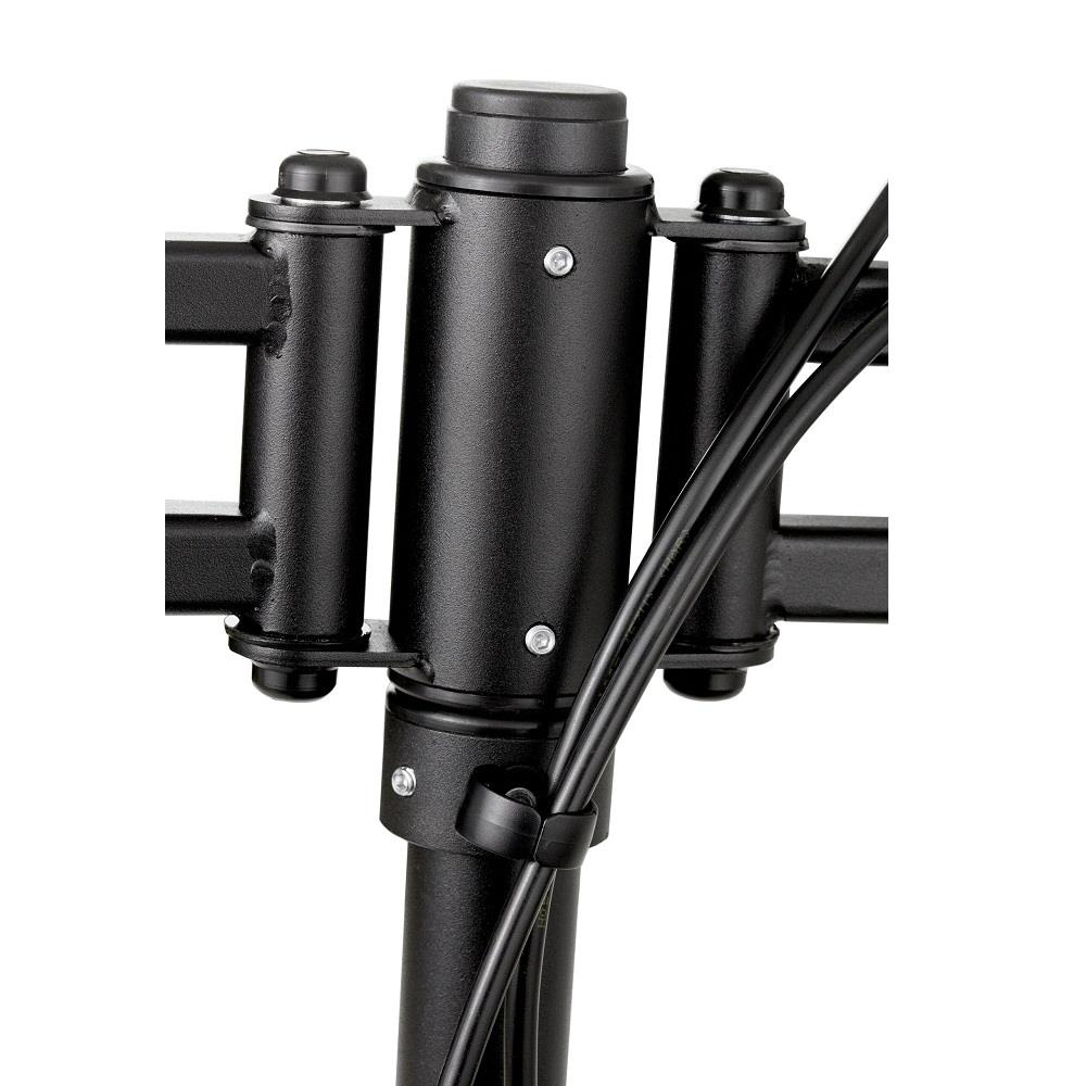 Stolní držák na 6 monitorů Edbak SV17 Stolní držák na 6 monitorů nebo televizorů s úhlopříčkou 17"-27", parabola, plně nastavitelné pozice monitorů, profesionální kvalita, VESA standardy 75x75 a 100x100, barva černá, nosnost 60kg Profesionální parabolický stolní držák na 6 monitorů 17-27". Nastavitelná poloha každého monitoru dle potřeby: otáčení do stran, naklápění, korekce roviny, pivot, posun do stran. Nastavení potřebné výšky vodorovných nosníků s monitory. V balení najdete 2 typy stolních úchytů: svěráky na uchycení na okraje stolů nebo šroubovici pro uchycení do průchodek. Systém vedení kabeláže. Nejvyšší kvalita, silnostěnný materiál. Podpora VESA standardů 75x75 a 100x100, barevné provedení černé, nosnost 60kg. Záruka 10 let. Profesionální stolní držák na 6 monitorů v parabole Edbak SV17 Technické údaje: nosnost 60kg na monitory s úhlopříčkou 17" až 27" VESA standardy 75x75mm a 100x100mm polohování vzdálenosti monitorů mezi sebou 223mm nastavení sklonu +/- 50° otáčení monitoru do stran +/-45° funkce pivot uchycení na stolové desky o síle 10-55mm (průchodka) nebo 10-80mm na okraj stolu nejvyšší kvalita, silnostěnný materiál, profesionální výrobek velmi snadná a rychlá montáž barva černá záruka 10 let Držák na 6 monitorů displejů Edbak SV17 Stojan na 6 monitorů Edbak SV17 podporuje VESA standardy: VESA 75x75 VESA 100x100 možnost zakoupení rozšíření na VESA 200x100 a 100x200 možnost zakoupení rozšíření na VESA 200x200.