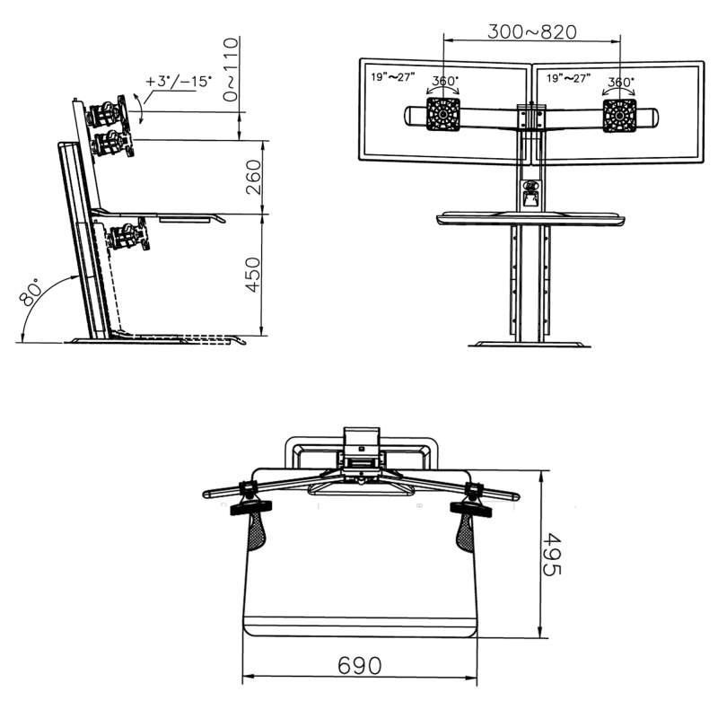 Stolní pracovní stanice pro 2 monitory Fiber Mounts ST15-2AW Profesionální pracovní stanice na 2 monitory 19-27" pro práci vsedě nebo vestoje Pracujte kdykoliv vsedě nebo vestoje - zlepšete své pracovní pohodlí a udělejte něco pro své zdraví. Profesionální pracovní stanice na 2 monitory ST15-2AW umožňuje díky pokročilému systému velmi snadné a rychlé nastavení výšky monitorů do potřebné pozice pro práci vsedě nebo vestoje. Luxusní bílé provedení podtrhuje naprosto vynikající kvalitu. Záruka 5 let. Profesionální kancelářská stolní pracovní stanice na 2 monitory pro práci vsedě nebo vestoje Fiber Mounts ST15-2AWKancelářská stolní pracovní stanice výškově polohovatelná pro práci vsedě nebo vestoje Fiber Mounts ST15-2AW Technické údaje: celková maximální hmotnost monitorů 11kg na monitory s úhlopříčkou 19-27" podporuje VESA standardy 75x75 a 100x100 nastavení výšky monitorů od police na klávesnici a myš 0-110mm změna výšky pro práci vsedě nebo vestoje 0-450mm vyšší produktivita práce, zdravější styl práce unikátní pokročilý systém pro velmi snadné a rychlé výškové polohování možnost nastavení náklonu monitorů +15° až -3° polička na klávesnici a myš, rozměry 690x495mm esteticky ukrytý USB port funkce pivot (rotace monitorů o 360°) nádherný dizajn v bílém provedení nejvyšší kvalita, bezpečnost a stabilita na pracovním stole stačí volné místo s rozměry 450x480mm záruka 5 let Stolní pracovní stanice pro 2 monitory do kanceláře nebo pracovny pro snadnou a rychlou změnu práce vsedě nebo vestoje Fiber Mounts ST15-2AW Pracovní stanice pro 2 monitory ST15-2AW podporuje VESA standardy: VESA 75x75 VESA 100x100 Pracovní stanice na 2 monitory pro práci vsedě nebo vestoje Fiber Mounts ST15-2AWPracovní stanice na 2 monitory pro práci vsedě nebo vestoje Fiber Mounts ST15-2AW Pracovní stanice na 2 monitory pro práci vsedě nebo vestoje Fiber Mounts ST15-2AWPracovní stanice na 2 monitory pro práci vsedě nebo vestoje Fiber Mounts ST15-2AW Profesionální stolní pracovní stanice pro pohodlnou práci vsedě nebo vestoje, rychlá a snadná změna požadované výšky. Snižuje bolest zad a zvyšuje pracovní výkon a pohodlí. Krásný dizajn, který si získá nejen Vás, ale úplně každého..