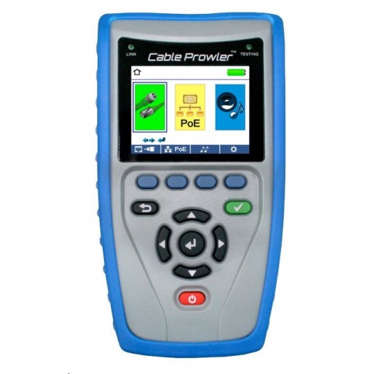 - Testuje ethernet a kotroluje konektivitu včetně testů pro zkraty, přehozené páry, špatně zapojené páry, neukončené kabely