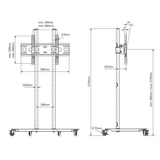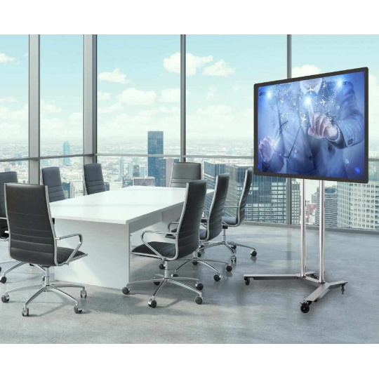 Televizní stojan EDBAK TR1-PWB Mobilní stojan na Tv 43" až 75", nastavení výšky 30-175cm, naklápění +6°/-9°, VESA 100x100 až 600x400, vedení kabeláže, nosnost 80kg Tento profesionální velmi kvalitní televizní stojan je vhodný především na prezentaci pomocí televize nebo monitoru o úhlopříčce 43" až 75". Nastavení Tv stojanu je propracováno do posledního detailu: nastavitelná výška obrazovky, nastavitelný náklon obrazovky, korekce roviny obrazovky (výborné v případě nerovnosti podlahy), systém skrytého vedení kabeláže, pojezdová kolečka s aretací. Stojan je velmi stabilní a bezpečný. V případě potřeby je možné dokoupit police na příslušenství, horní polici na kameru, podstavce místo koleček. Ideální pro videokonference a prezentace pomocí obrazové techniky. Televizní stojan EDBAK TR1-PWB Technické údaje: maximální zatížení 80kg na Tv a monitory 43" až 75" VESA standard 100x100 až 600x400 výška stojanu 180cm nastavitelná výška TV dle potřeby po celé výšce stojanu možnost náklonu TV +6° / -9° rozměry podstavy 1127x694mm (ŠxH) systém skrytého vedení kabeláže pojezdová kolečka s brzdou skvělá stabilita a bezpečnost možnost zakoupení police na příslušenství, police na kameru, přihrádky na katalogy, pevné podstavy profesionální výrobek - nejvyšší kvalita záruka 5 let Stojan na televize a monitory ideální na videokonference a prezentace Edbak TR1-PWB Televizní stojan Edbak TR1-PWB podporuje VESA standardy: VESA 100x100 VESA 200x100 VESA 200x200 VESA 300x200 VESA 300x300 VESA 400x200 VESA 400x300 VESA 400x400 VESA 600x400 maximální rozteč VESA pro uchycení Tv 600x460 Na televizní stojan EDBAK TR1-PWB je možné zavěsit všechny typy, značky a velikosti televizorů, které mají hmotnost do 80kg a které podporují kterýkoliv z výše uvedených VESA standardů. Velikost úhlopříčky televize nebo monitoru není podstatná a nehraje žádnou roli. Skleněná polička na příslušenství ke stojanu Edbak TRS2Horní polička na kameru nebo projektor 250x200mm Edbak CH5 Možnost dokoupení příslušenství: polička na příslušenství (až 3ks na stojan) horní polička na kameru pevné podstavce - výměna za pojezdová kolečka.