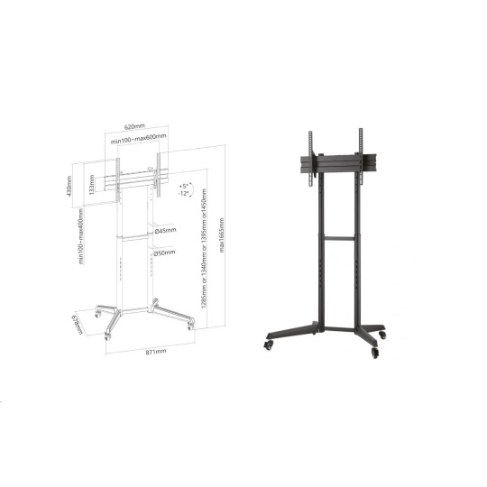 Tv stojan s kolečky, nastavením výšky a náklonu, na televize 37" - 70", výška 1285 / 1340 / 1395 / 1450 mm, náklon +5° / -12°, kolečka s aretací, podstava 871x678 mm, systém pro vedení kabeláže, instalační materiál, podporuje standardy VESA 100x100 až 600x400, nosnost 50 kg Kvalitní stojan na televize a monitory s naklápěním kolečky a nastavením výšky Fiber Mounts LUTAR-1 Potřebujete dát televizi nebo monitor na pojízdný stojan a nechcete utrácet majlant? Chcete mít možnost upravit si výšku obrazovky a mít možnost změnit úhel sklonu? Tak v tom případě pro Vás máme skvělé řešení: televizní stojan Fiber Mounts LUTAR-1, který vše splňuje na 100%. Pojízdný stojan s kvalitními kolečky s aretací, s výbornou stabilitou, který podporuje VESA standardy od 100x100 do 600x400 a spolehlivě unese zařízení s hmotností až 50 kg Vám umožní upravit výšku i náklon obrazovky. Konstrukce umožňuje skryté vedení kabeláže. Kvalitní vypalovaná černá barva. V balení naleznete montážní materiál. Na stojan poskytujeme záruku 5 let. Pojízdný stojan s nastavením výšky a náklonu Tv / monitoru Fiber Mounts LUTAR-1 Technické údaje: nosnost 50 kg podpora VESA 100x100 až 600x400 držák na televize / monitory 37" - 70" nastavitelná výška 1285 mm / 1340 mm / 1395 mm / 1450 mm nastavení náklonu obrazovky +5° / -12° podstava 871x678 mm pojezdová kolečka s aretací systém pro skryté vedení kabeláže kvalitní konstrukce barevné provedení černé záruka 5 let.